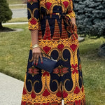 Elegant Geometric Print Midi Dress with Belt – Timeless Casual Chic