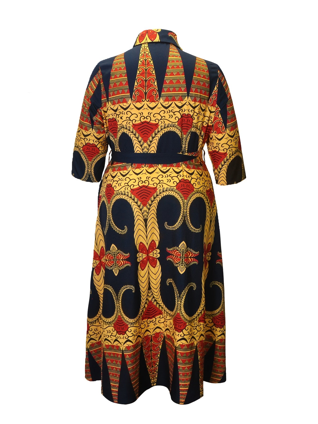 Elevate your everyday elegance with this Geometric Print Midi Dress, designed to blend structure, sophistication, and effortless style. Featuring a flattering belted waist, classic button-up collar, and a striking geometric pattern, this dress is perfect for women who appreciate polished yet practical fashion.